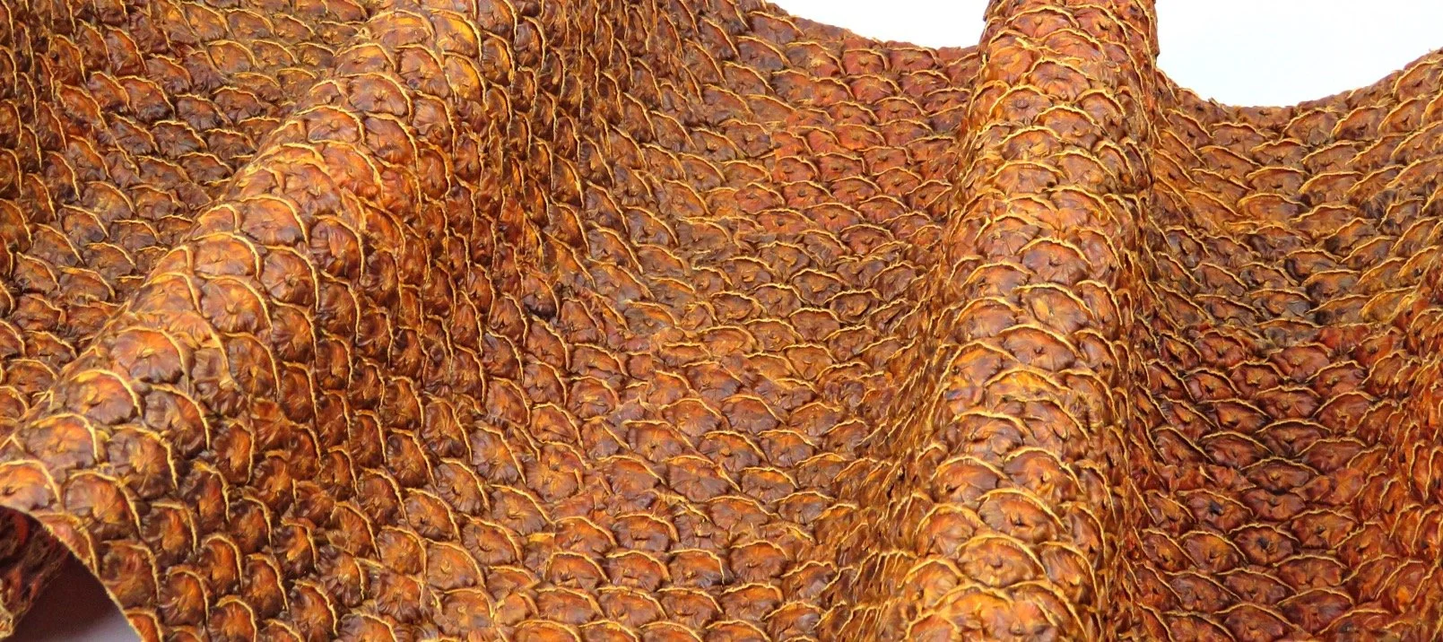 Ananasse™️. ⇾ Another one made to resemble exotic leather, but actually just resembles what it is — a pineapple. Again, probably synthetically coated for durability.