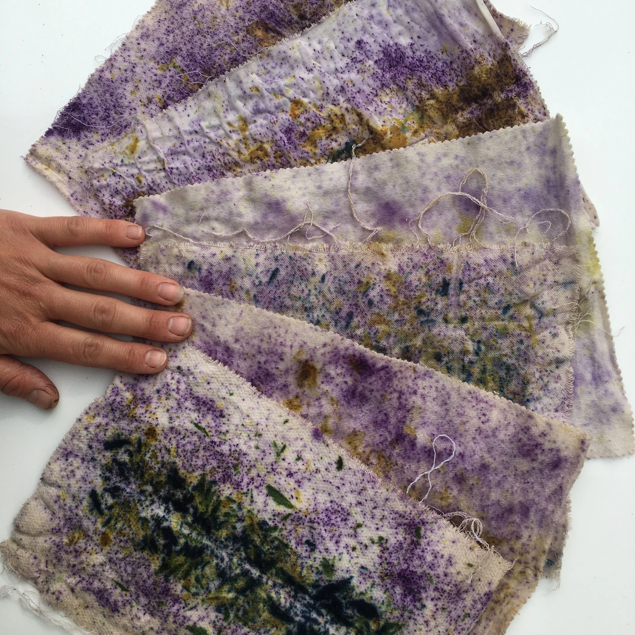 The dyestuffs are a combination of imported powdered pigments from George Weil and foraged dried local flowers.