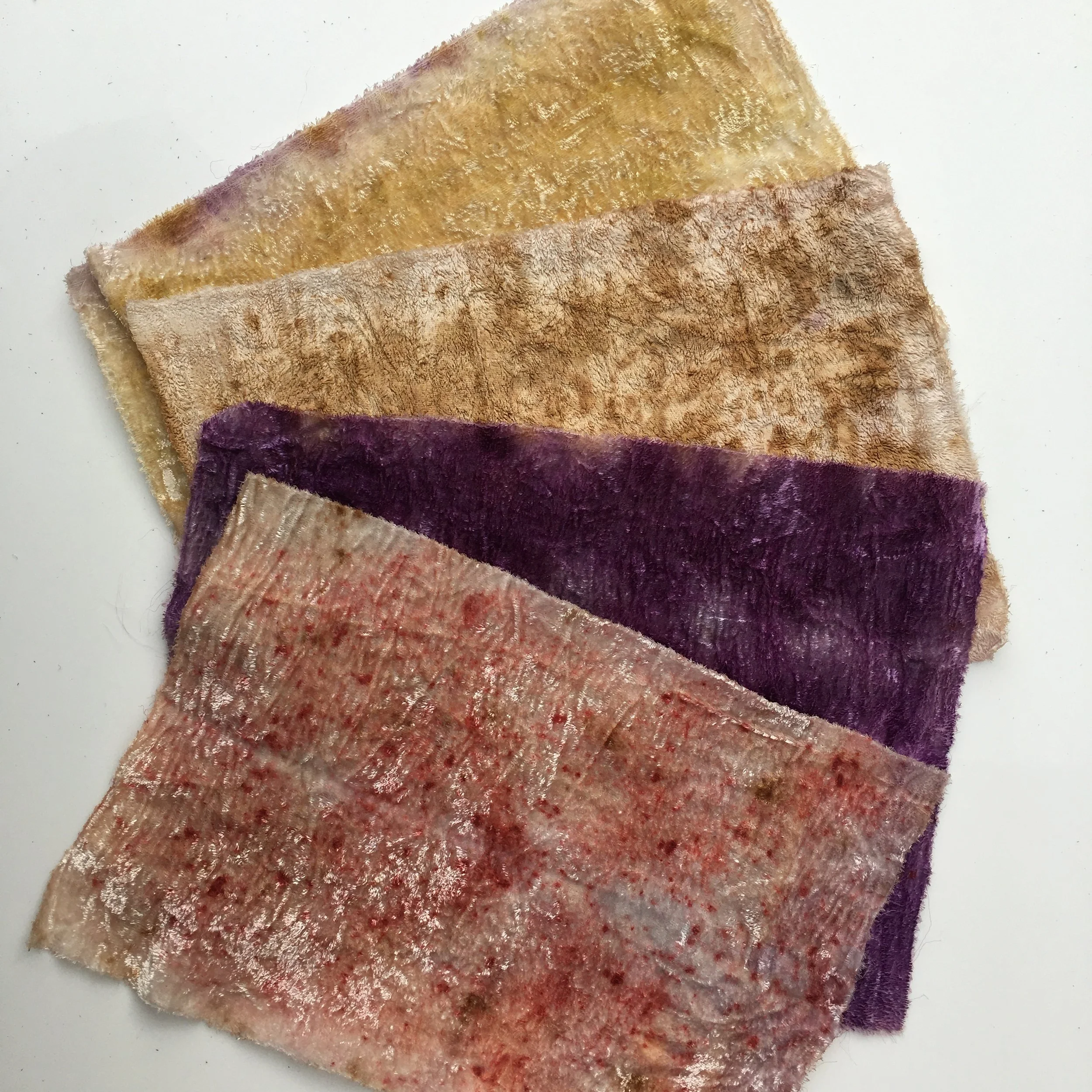 The dyestuffs are a combination of imported powdered pigments from George Weil and foraged dried local flowers.