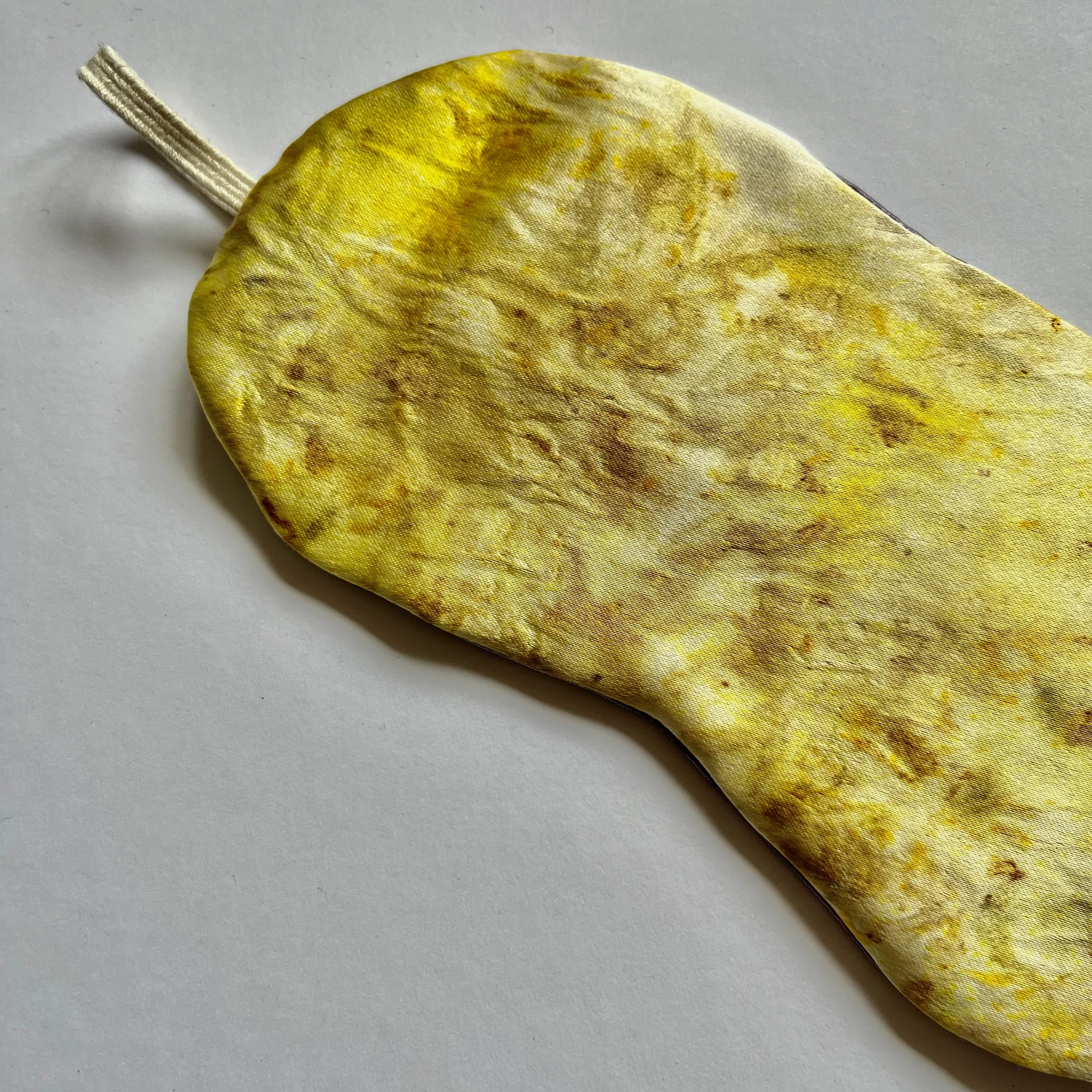 Reversible bundle-dyed silk satin eye mask for sleep and travel.