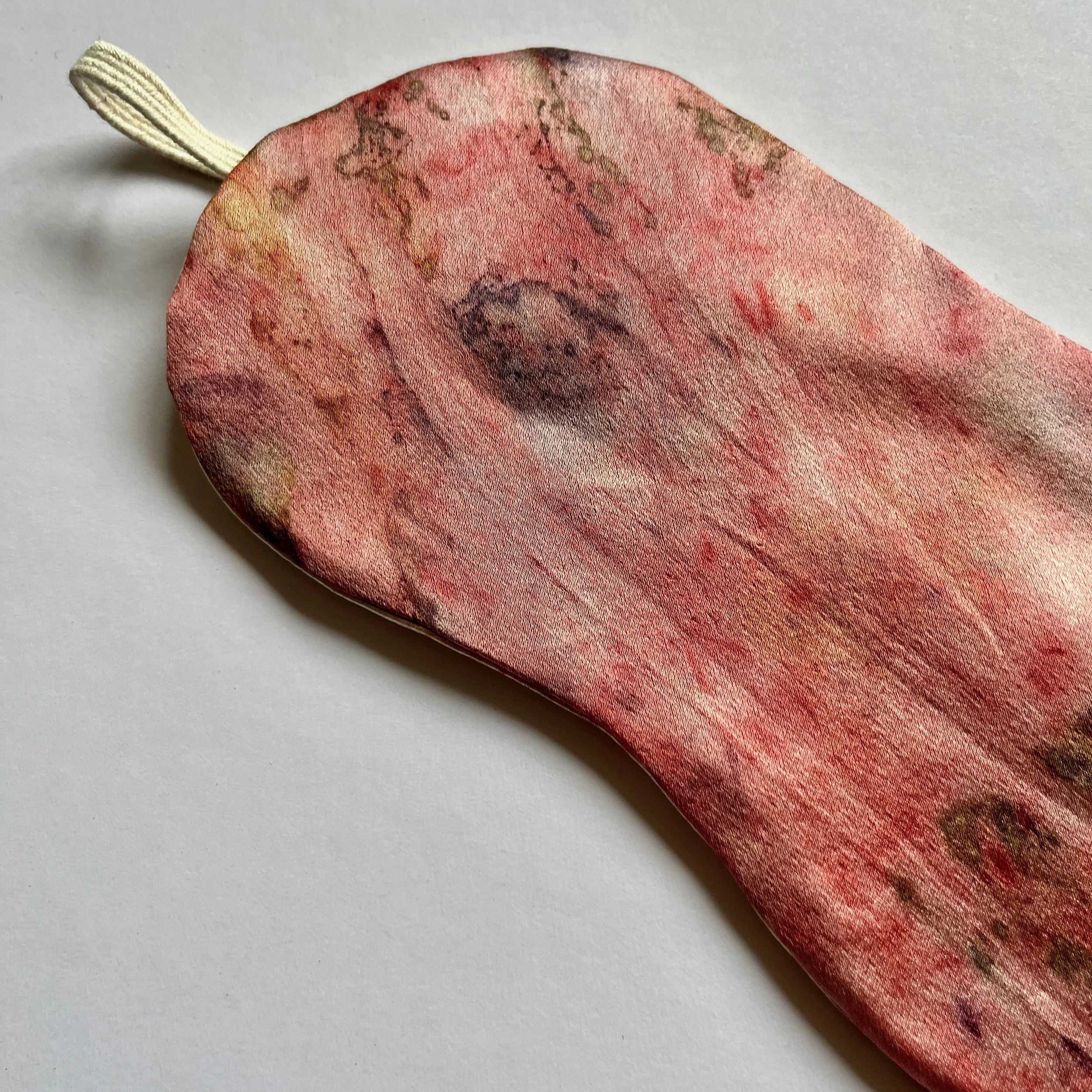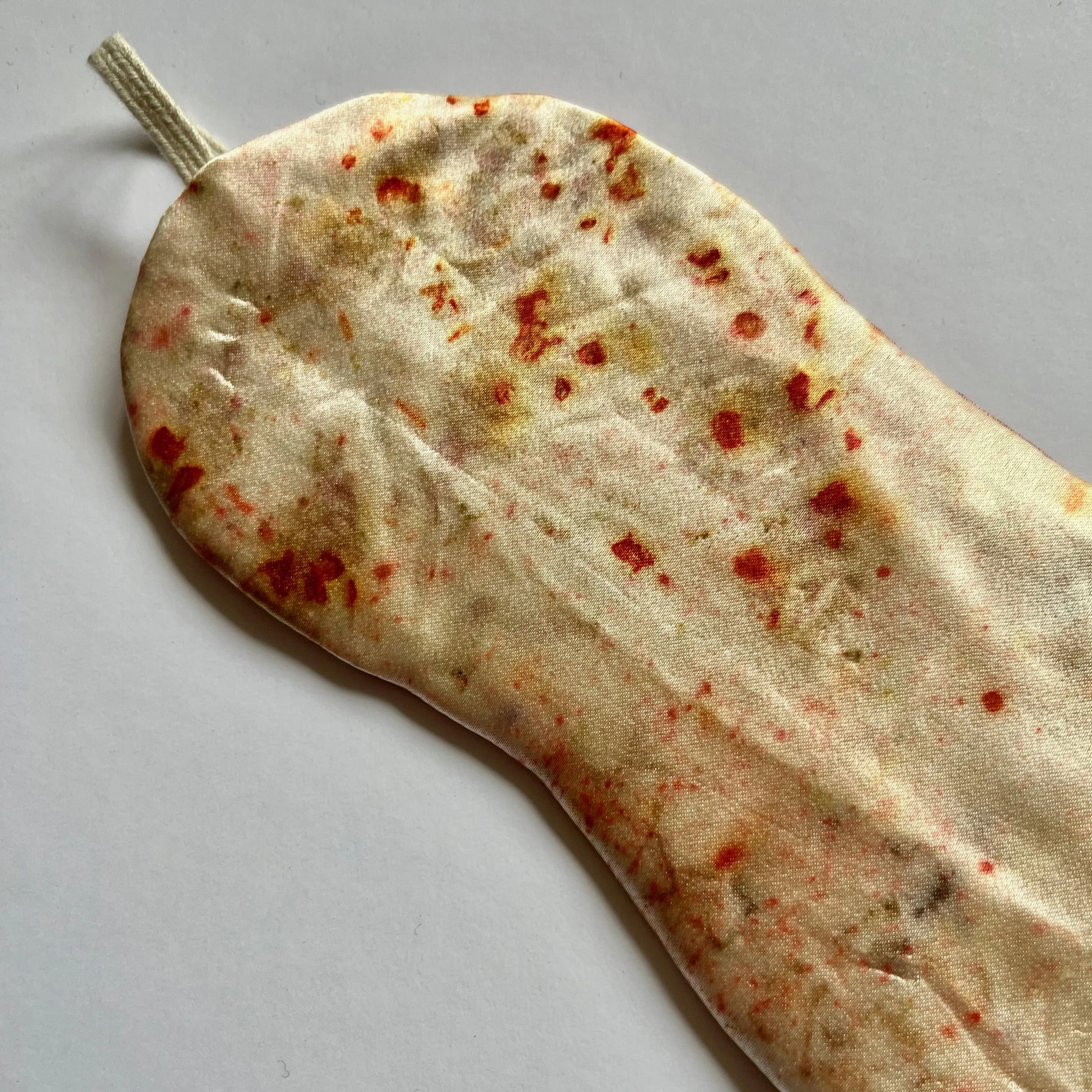 Reversible bundle-dyed silk satin eye mask for sleep and travel.