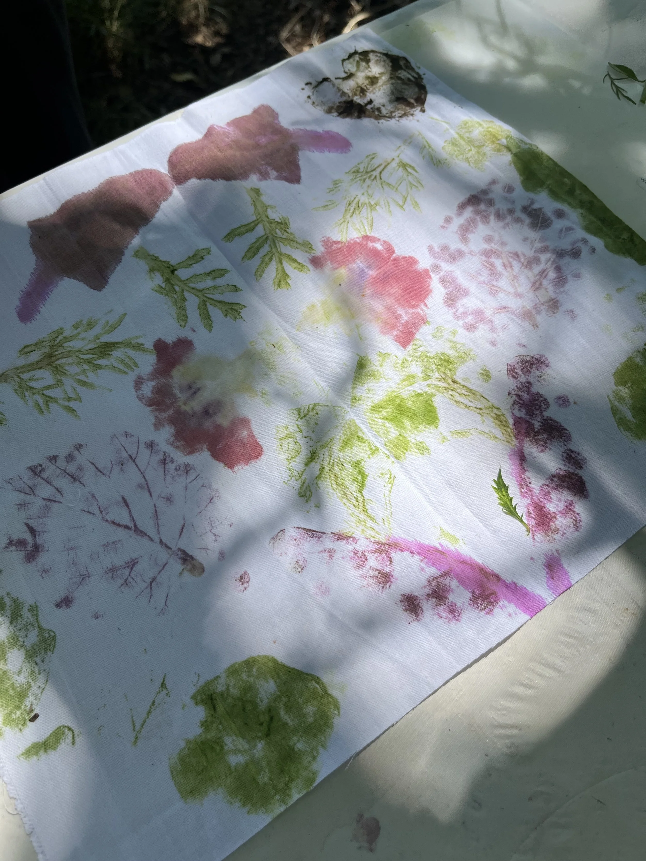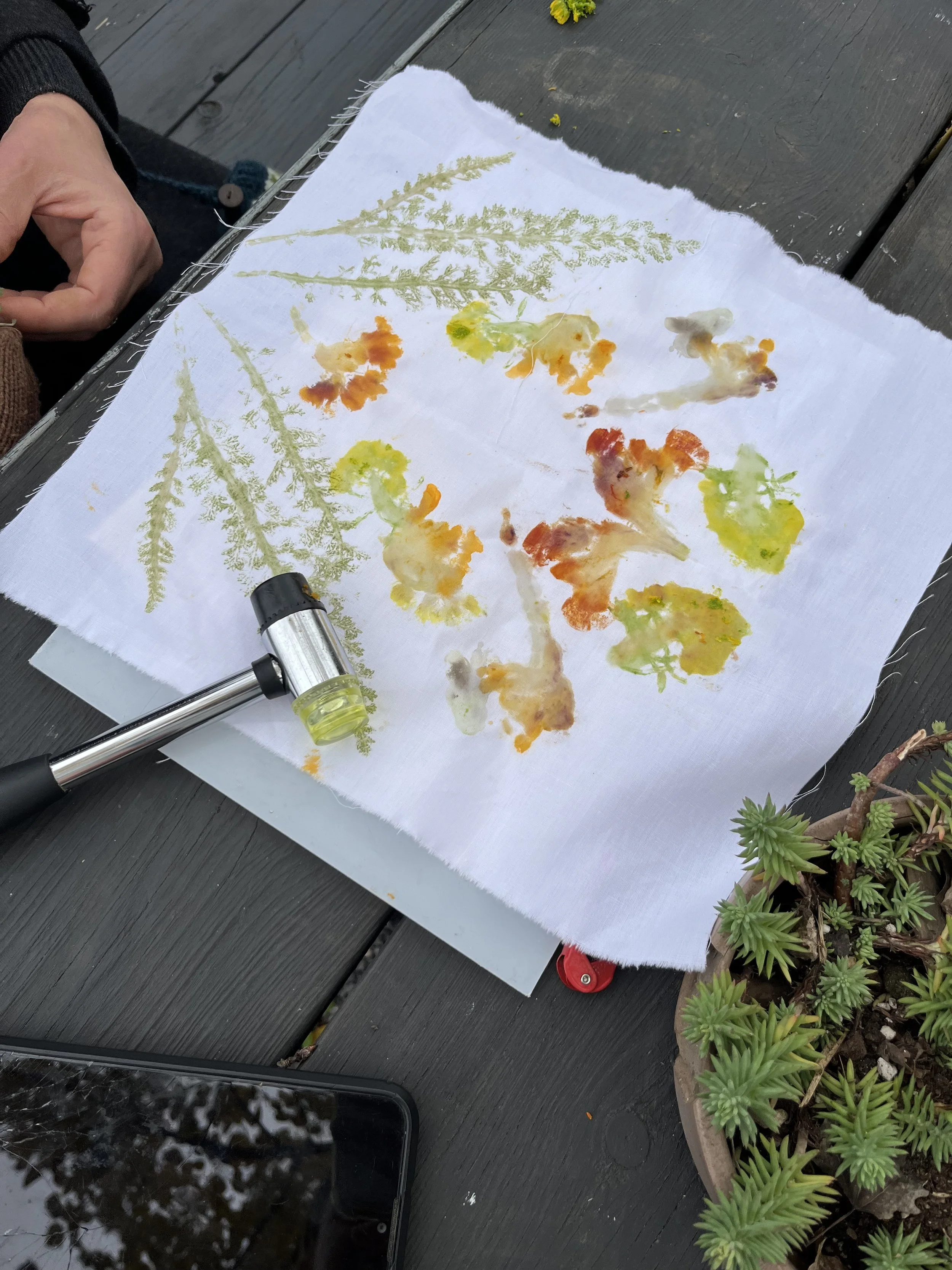⇾ Composing plant material and fabric wrapping for various dyeing patterns⇾ Seasonal plant signs and introduction to plants found in the session area